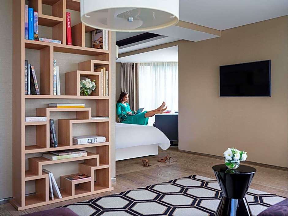 Commanding Bosphorus views and featuring small touches of Swiss and Turkish hospitality, you can sit in your living area or at your dining table and watch the boats go by. This suite’s HDTV, media panel, BOSE speaker, and free internet access will provide a variety of in-room entertainment while the king bed will make you feel like royalty. To relax, you can walk into your rain shower or soak in your bathtub.